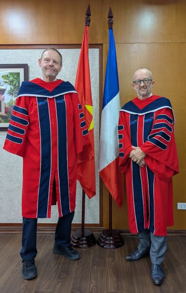 Remise des diplômes par le recteur principal de l’USTH, Professeur Jean-Marc Lavest, et par Denis Fourmeau, Attaché de coopération scientifique et universitaire de l’Ambassade de France